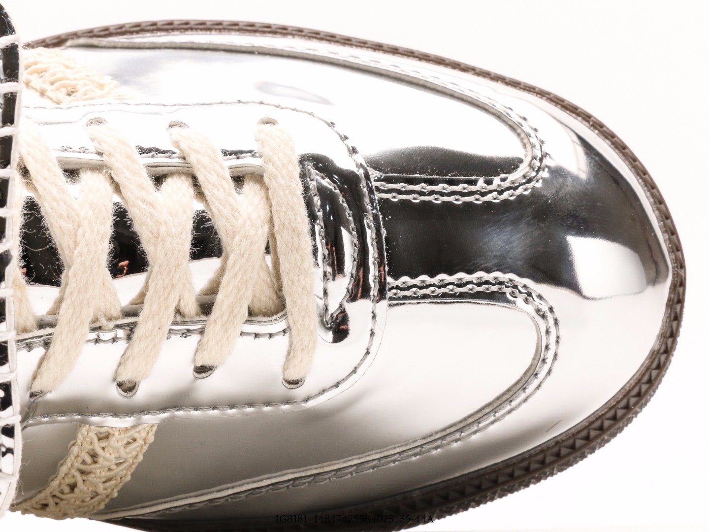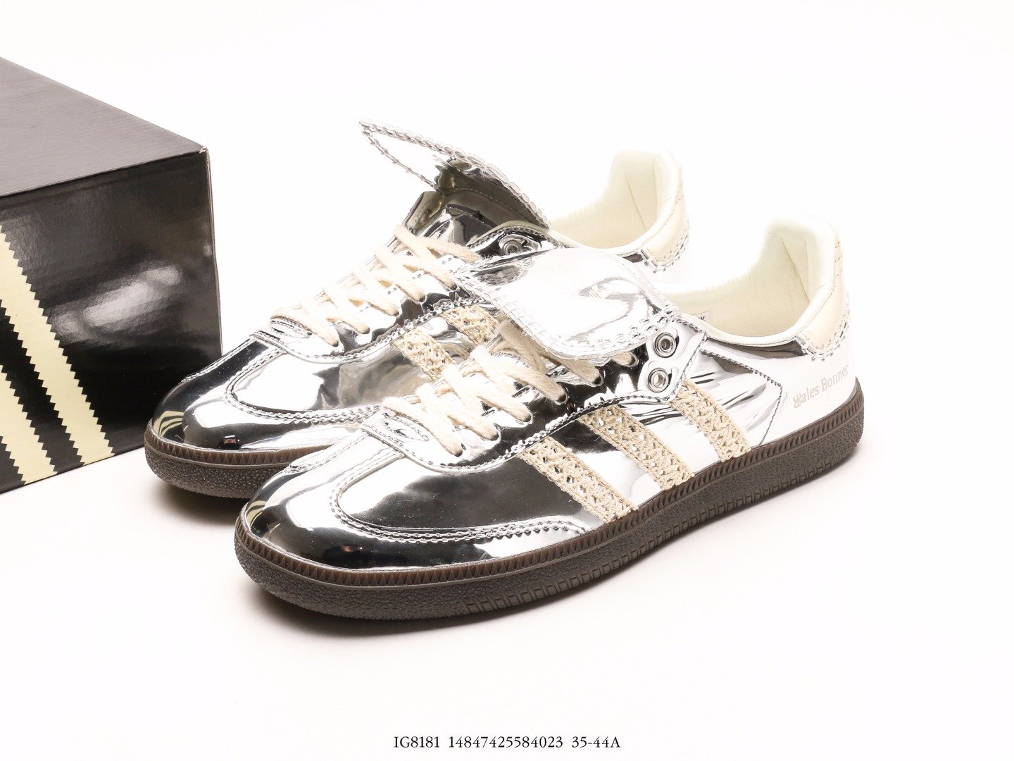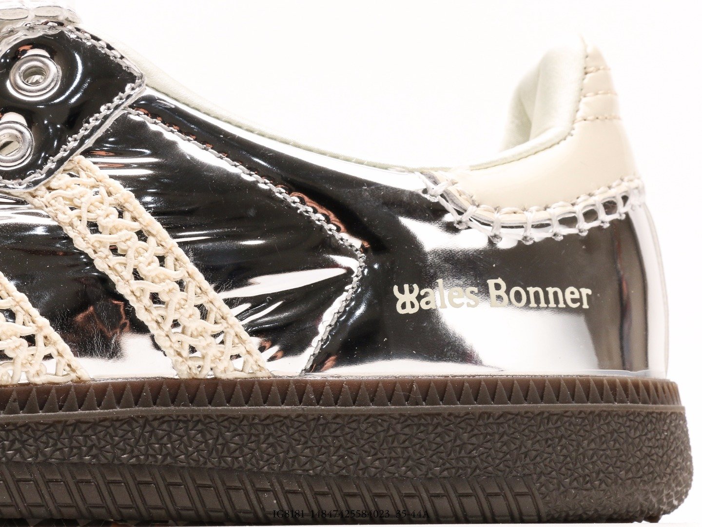 June 2023 saw the bold arrival of the adidas Samba Wales Bonner collaboration in a glinting Silver colorway. In an homage to vintage aesthetics, adidas partners with the innovative Wales Bonner to reimagine the Samba silhouette.