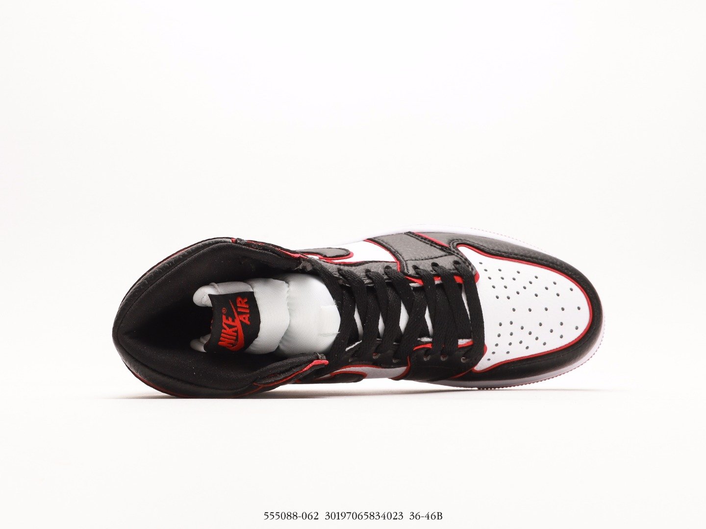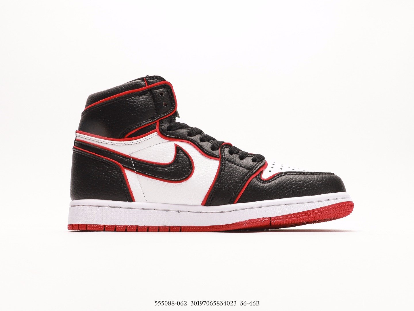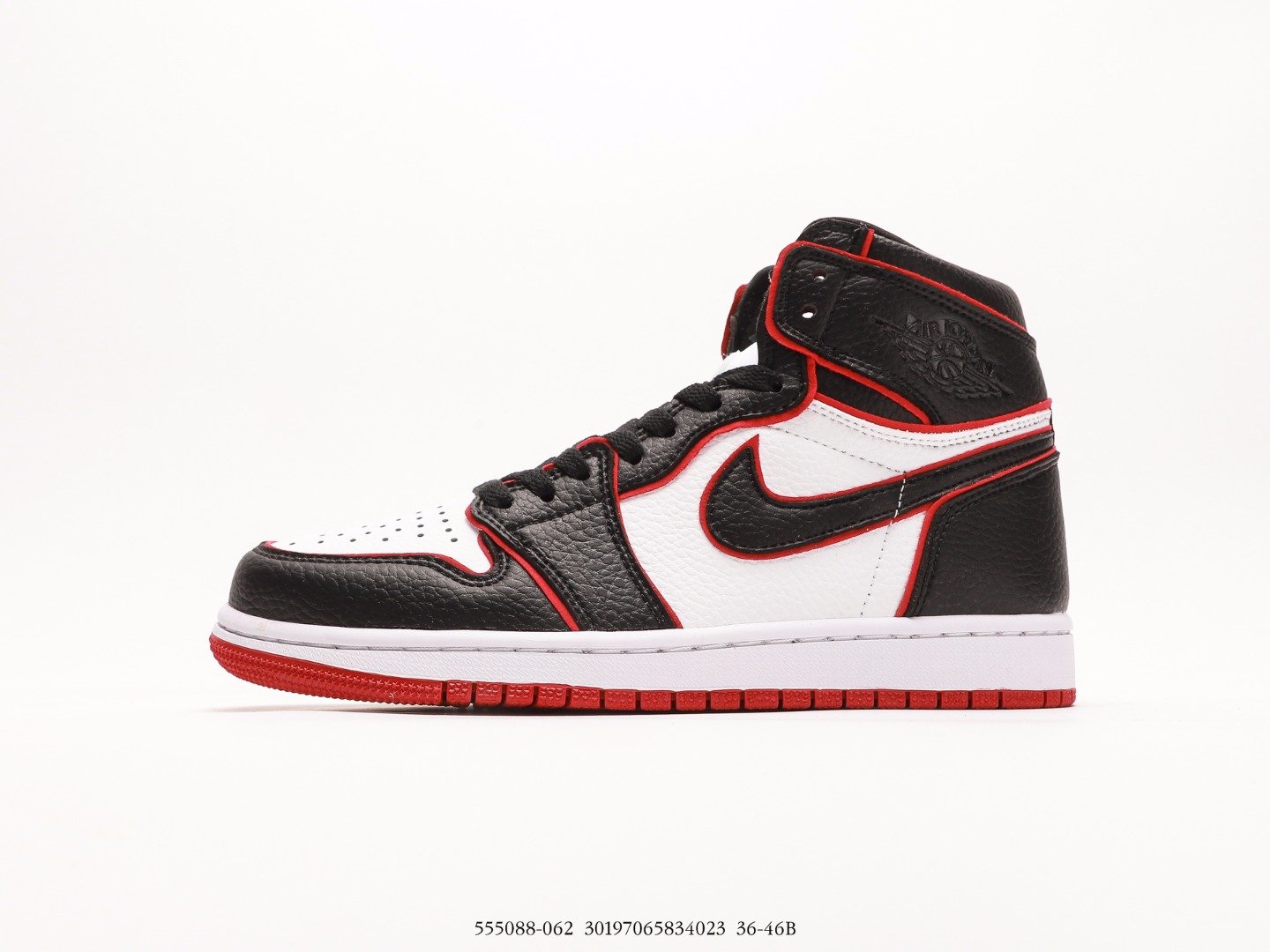 This Jordan 1 features a white leather upper with black overlays and a red trimming that matches the laces and outsole. “Nike Air” tongues and “Who Said Man Was Not Meant To Fly” printed on the insoles completes the design. These sneakers released in November of 2019 and retailed for $160.