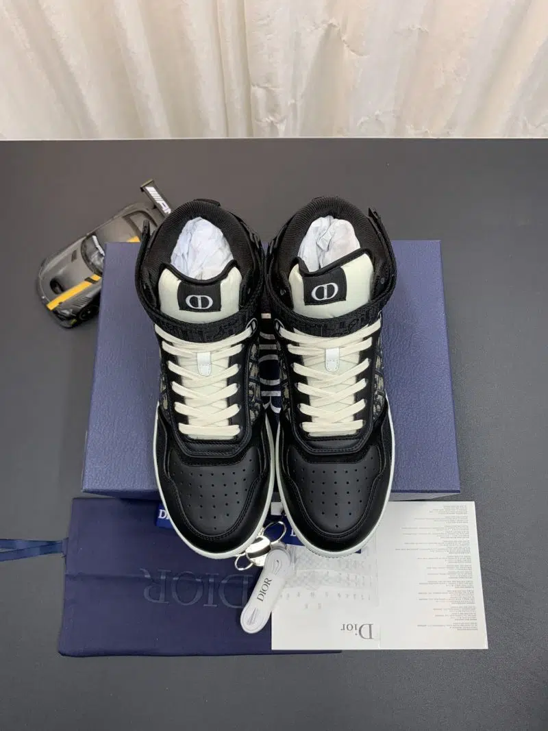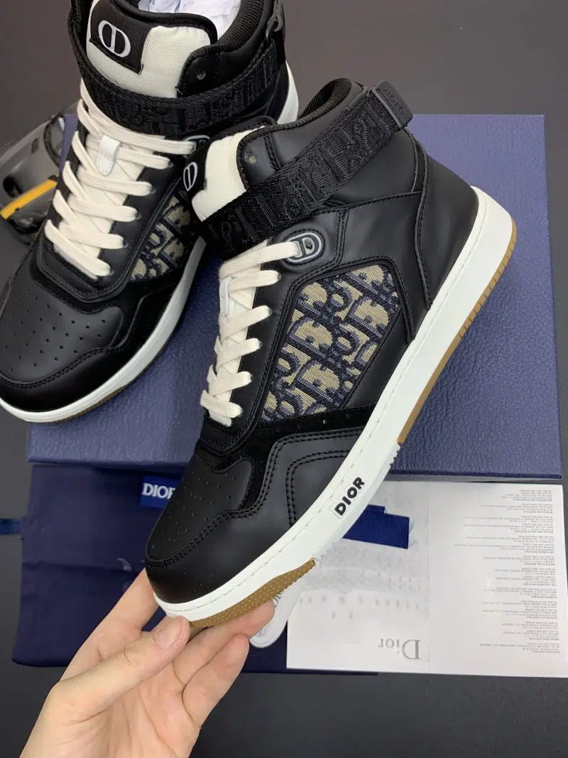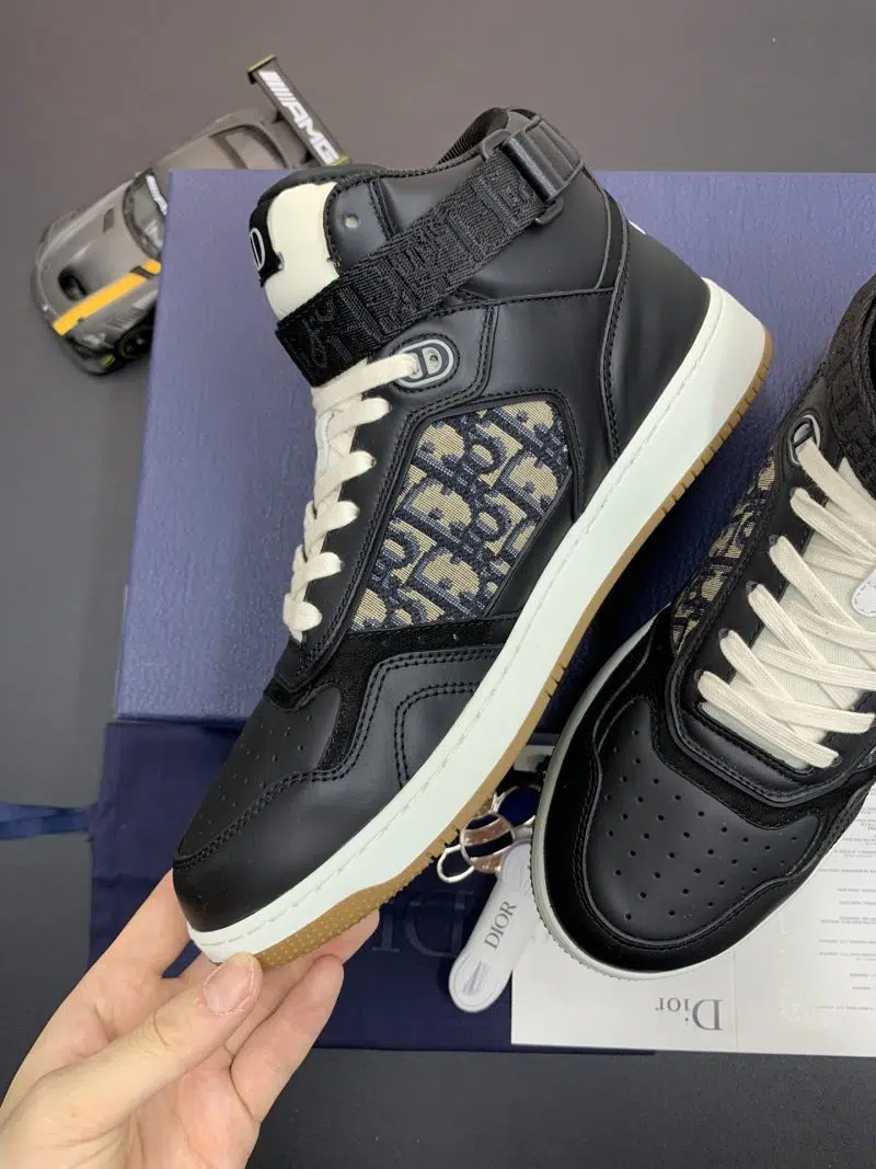 DIOR B27 High Top Sneakers Black Calfskin with Oblique Jacquard