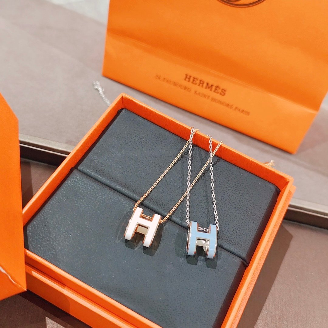 Two Colorful 'H' Necklaces in a Hermes Box