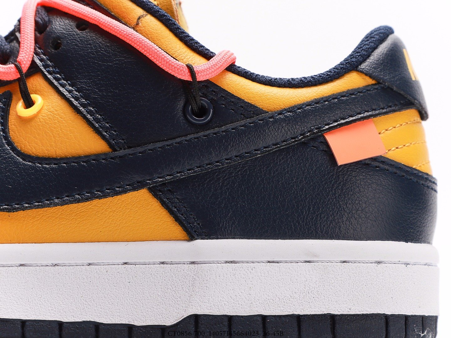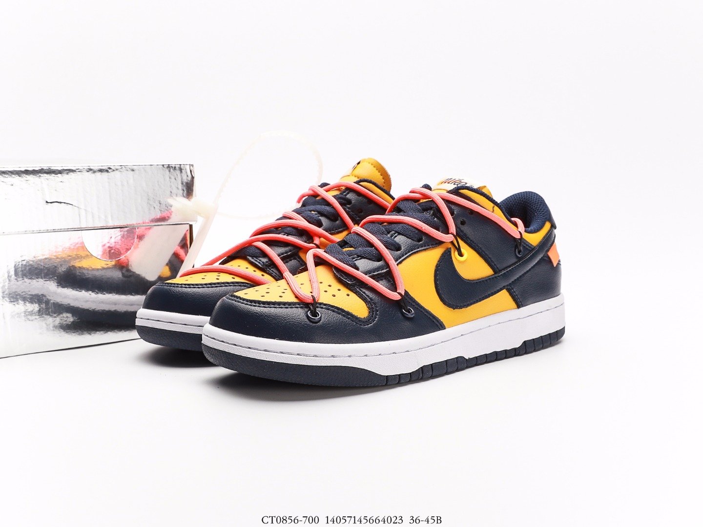 Virgil Abloh pays homage to skate culture’s adoption of 1980’s Nike Basketball silhouettes with the Nike Dunk Low Off-White Michigan, now available on StockX. When Nike unveiled the Dunk as the centerpiece of their Nike College Color’s program in 1985, seven different colleges were represented in the first colorways offered, with Michigan was one of the first schools.