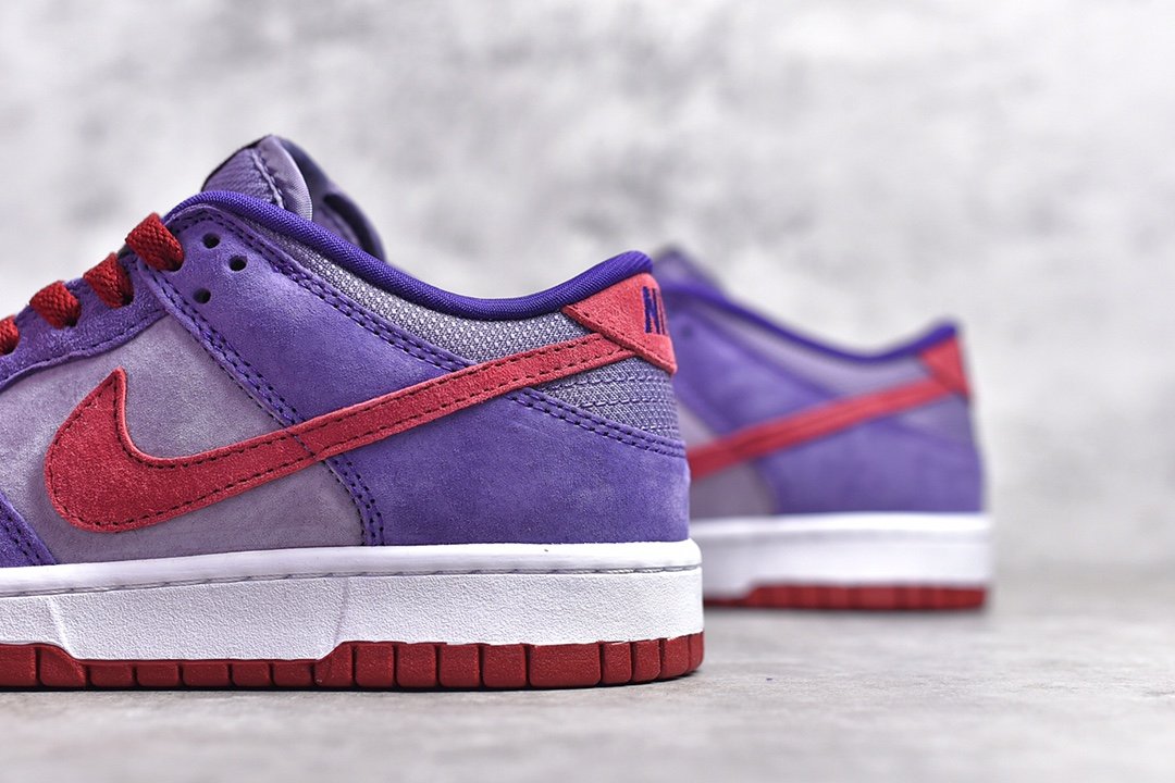 The Dunk Low is composed of a purple-shaded premium suede upper with a red Swoosh and details. A white midsole, red outsole, and Nike branding on the heel completes the design. These sneakers released in February of 2020 and retailed for $100. The Nike Dunk Plum Low (2020/2024) restocked in March of 2024 and retailed for $115.