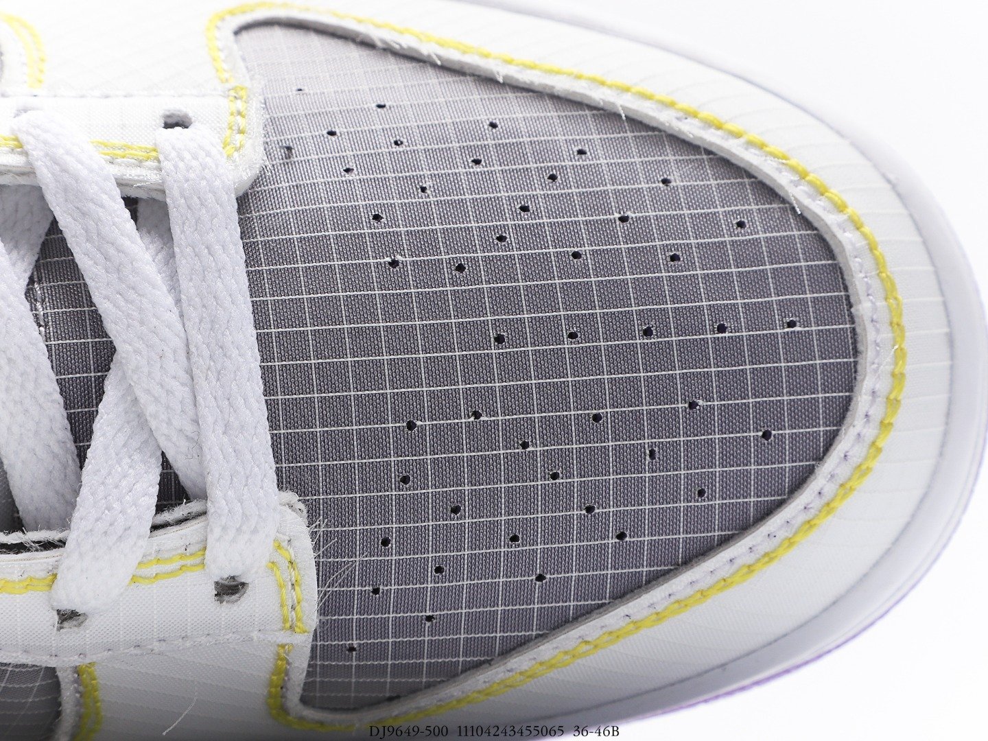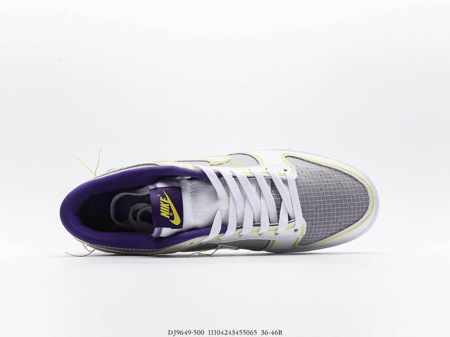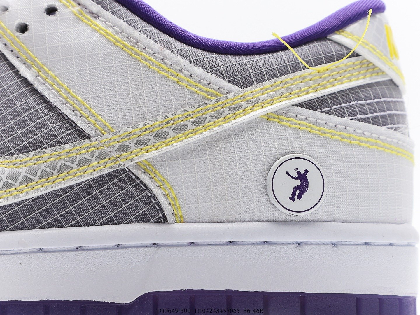 The Nike Dunk Low Union LA Passport Pack Court Purple draws a resemblance to the 1999 Nike Dunk High CO.JP City Pack. Beneath a tear-away ripstop shroud, it features a Court Purple and white smooth leather construction. From there, a Union LA Frontman logo on the heel and “UN|LA” quarter panel tabs add the finishing touch.