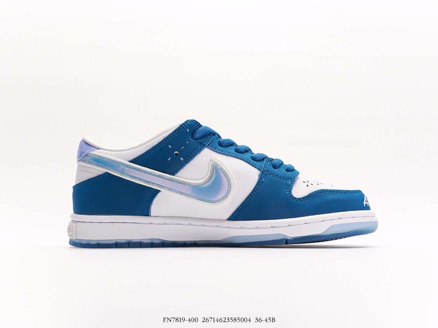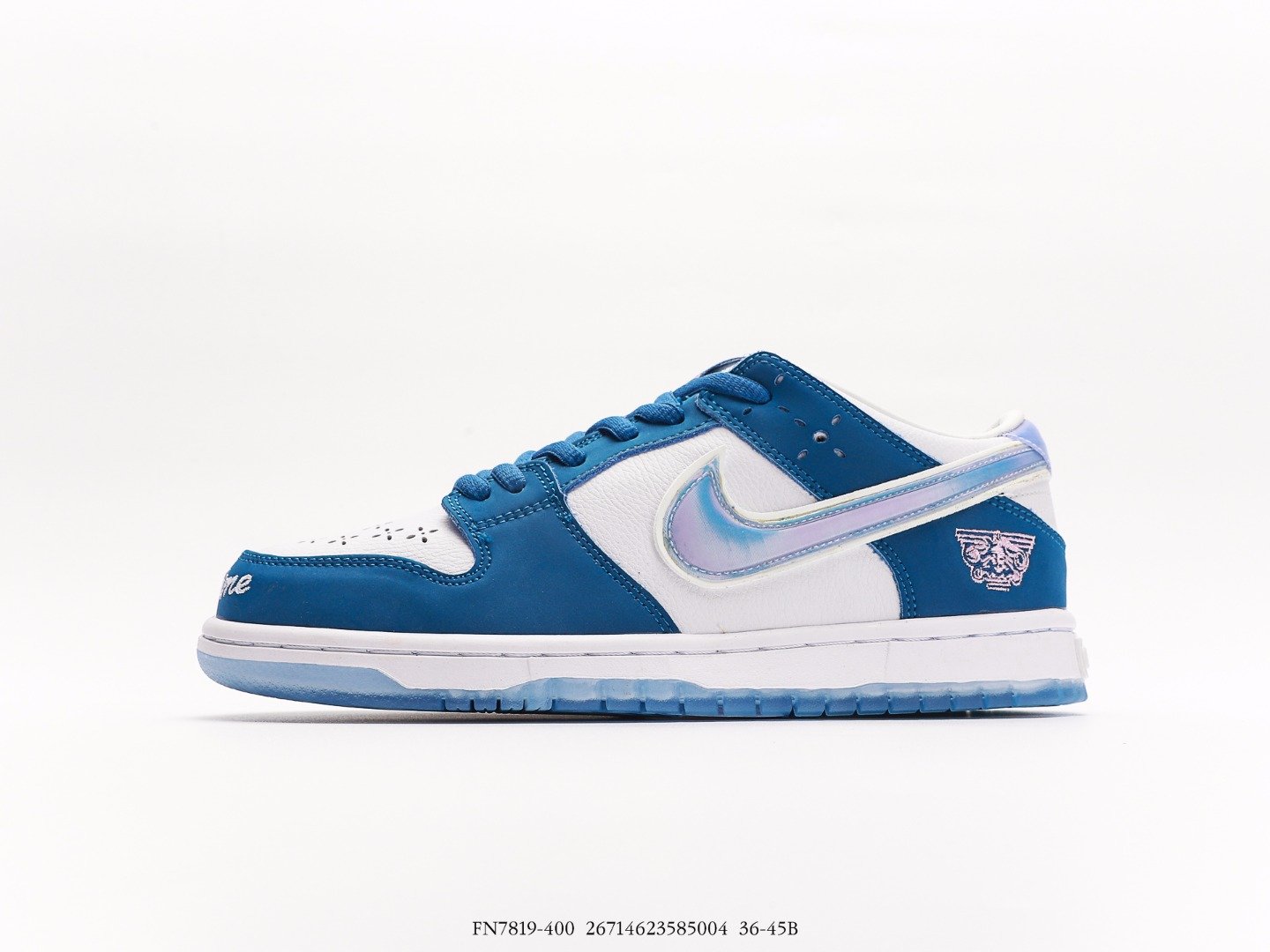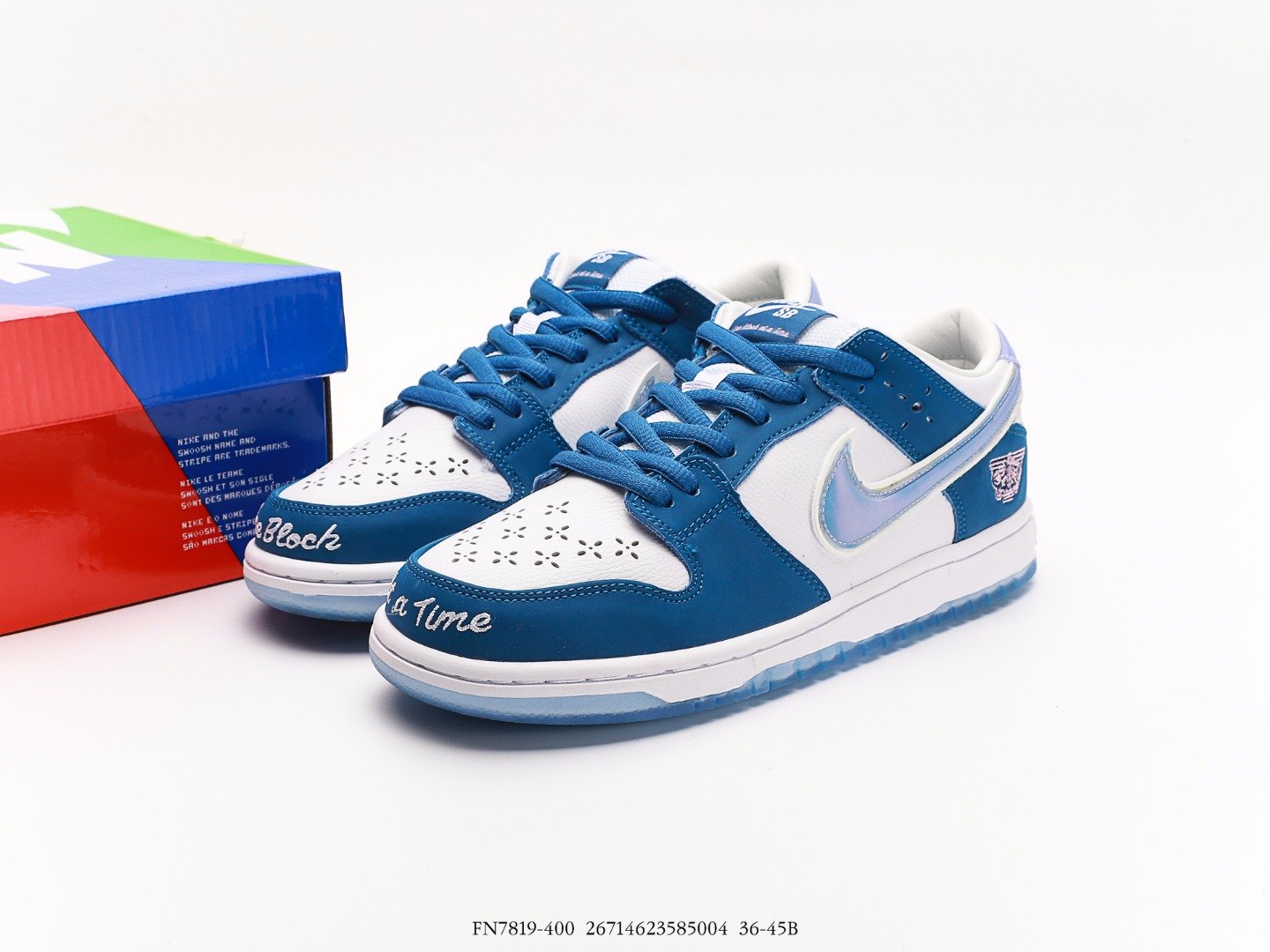 Introducing the Born x Raised One Block At A Time Nike SB Dunk Low, showcased in a Deep Royal Blue and White colorway.