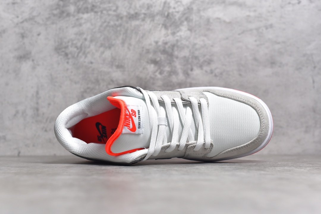 The Nike SB Dunk Low Infrared Orange Label draws inspiration from the original Nike Air Max 90 Infrared. It features a white, Cement Grey, black, and Infrared woven mesh and suede upper with the bright Infrared colors mostly on the bottom and top edges of the silhouette, leaving the remaining grey and black tones of the upper sandwiched between the red and white shades. From there, a grey Swoosh and a Zoom Air sole complete the design.