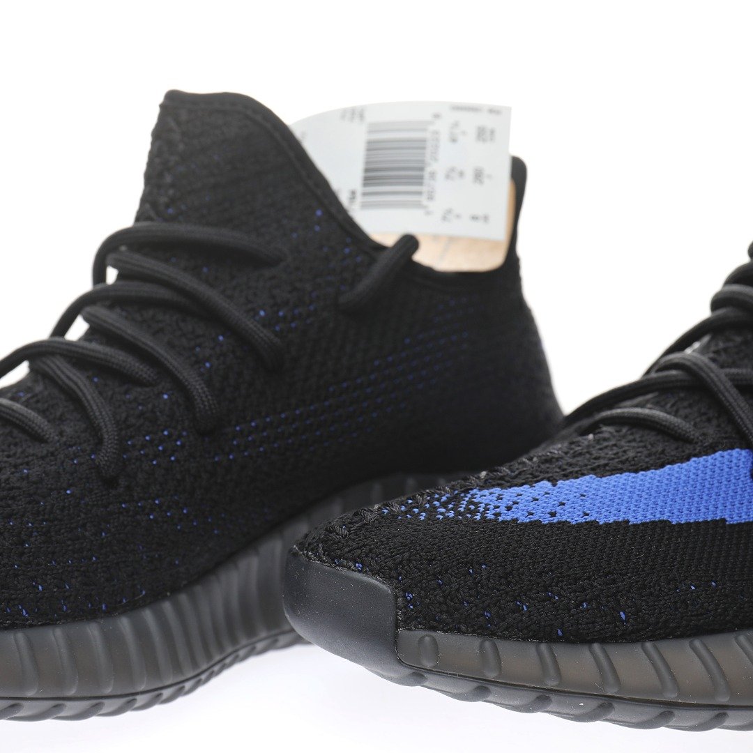 The adidas Yeezy 350 V2 Dazzling Blue is reminiscent of the 2016 Yeezy 350 V2 Black Friday Pack. Instead of featuring a marbled pattern and sheer side stripe, it opts for a solid black Primeknit upper and blue side stripe with “SPLY-350” text. At the base, a muted Boost sole offers comfort and support.