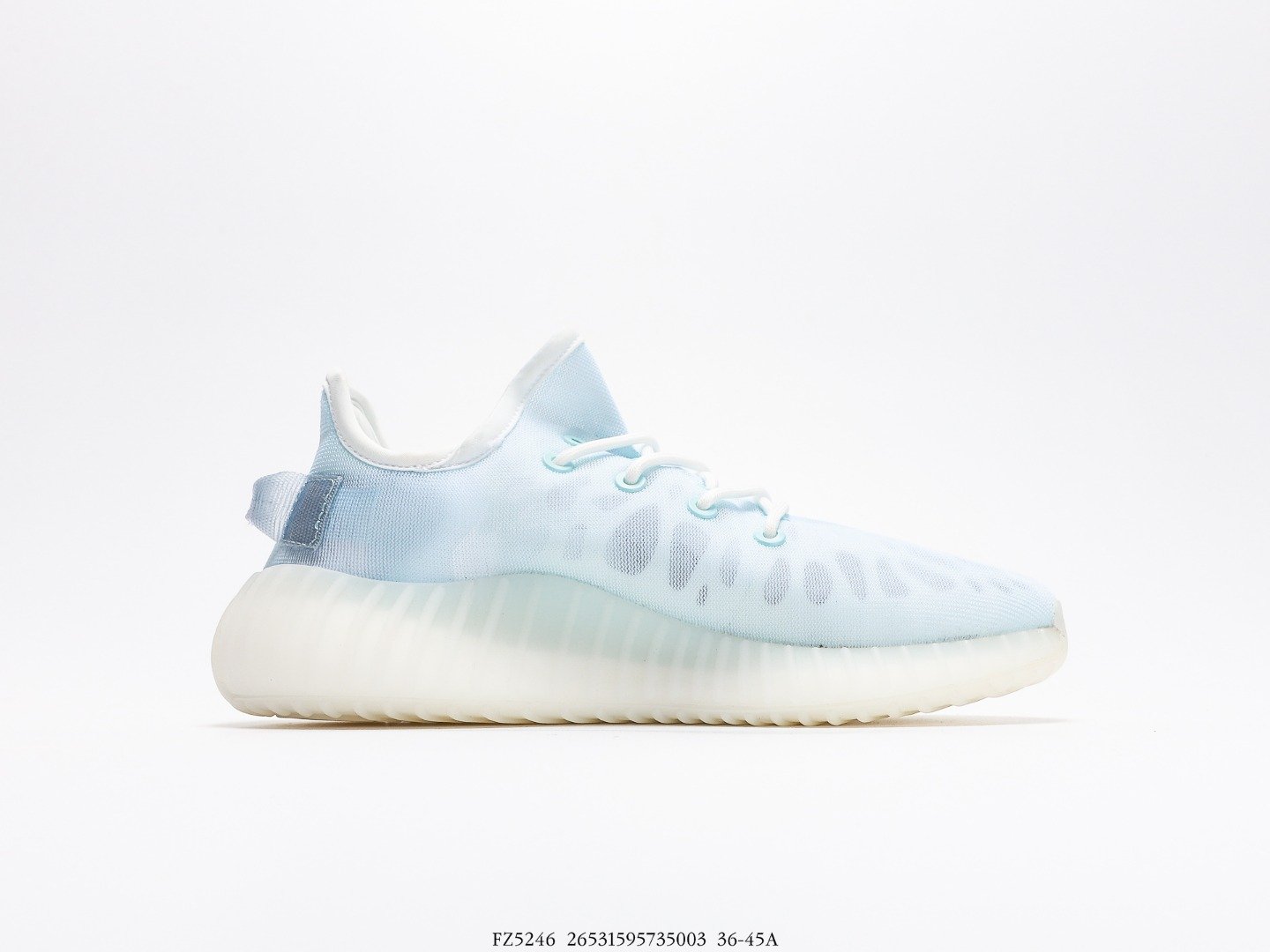 The adidas Yeezy 350 V2 Mono Ice is one of three from the Mono pack. Each sneaker’s upper is constructed from a new monofilament mesh in Ice blue that exposes the model’s inner cage lining. The Mono pack brings back the heel’s pull tab design on each pair. To finish it out, a familiar Boost sole is added for comfort for the wearer.